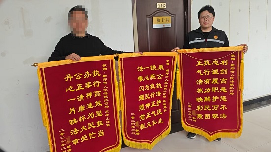 车辆顺利交付后,申请执行人对法院高效公正、担当作为的执行工作深表满意与感谢。为表达谢意,企业专程向法院执行局和司法警察大队赠送四面锦旗,“执行有力解民困”“执行高效显担当”“忠诚履职护万家”等字句,是对执行干警辛勤付出的最好肯定,也是对法院执行工作的最高赞誉。